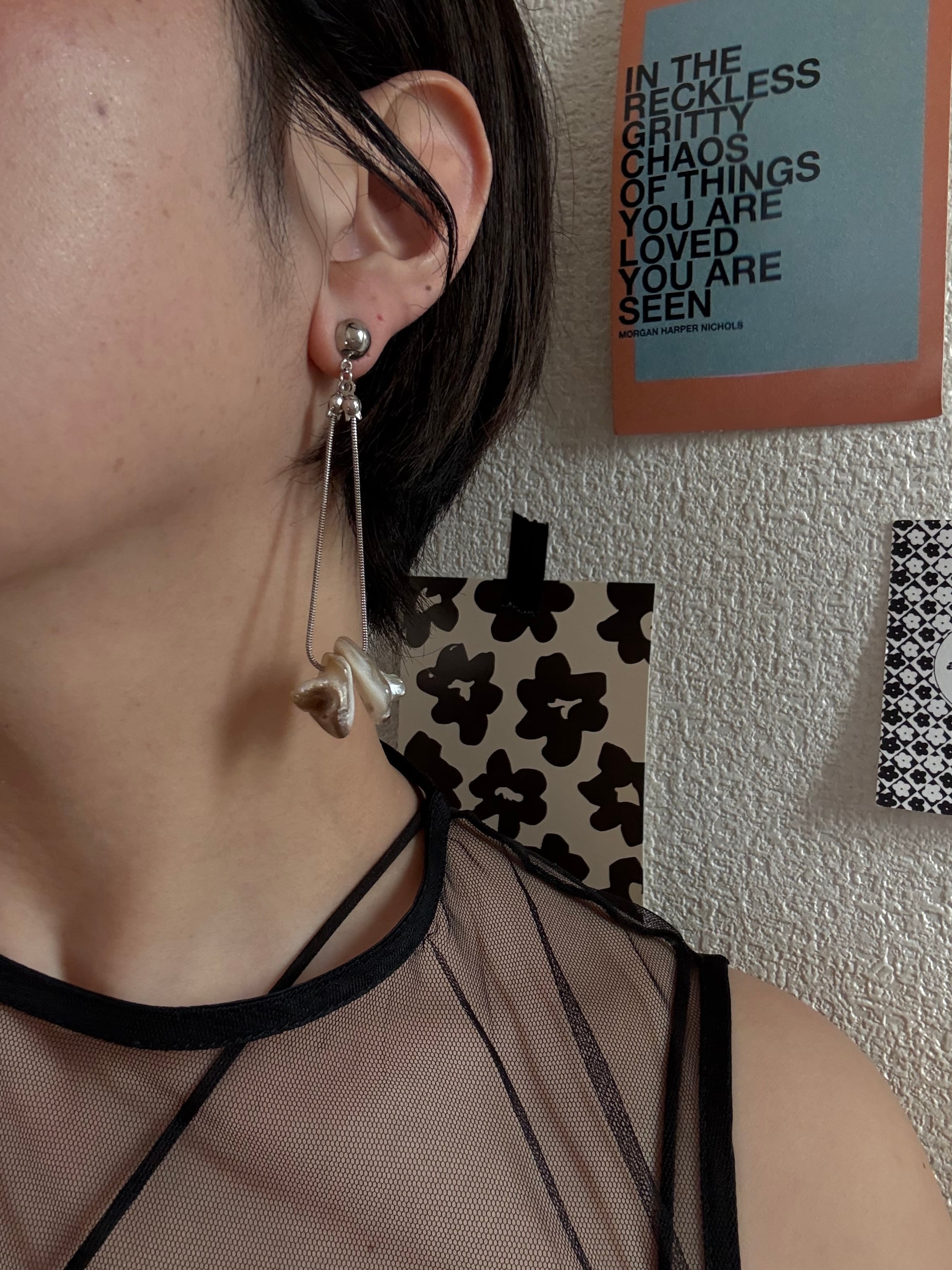 スネークチェーンを使用した耳飾り。