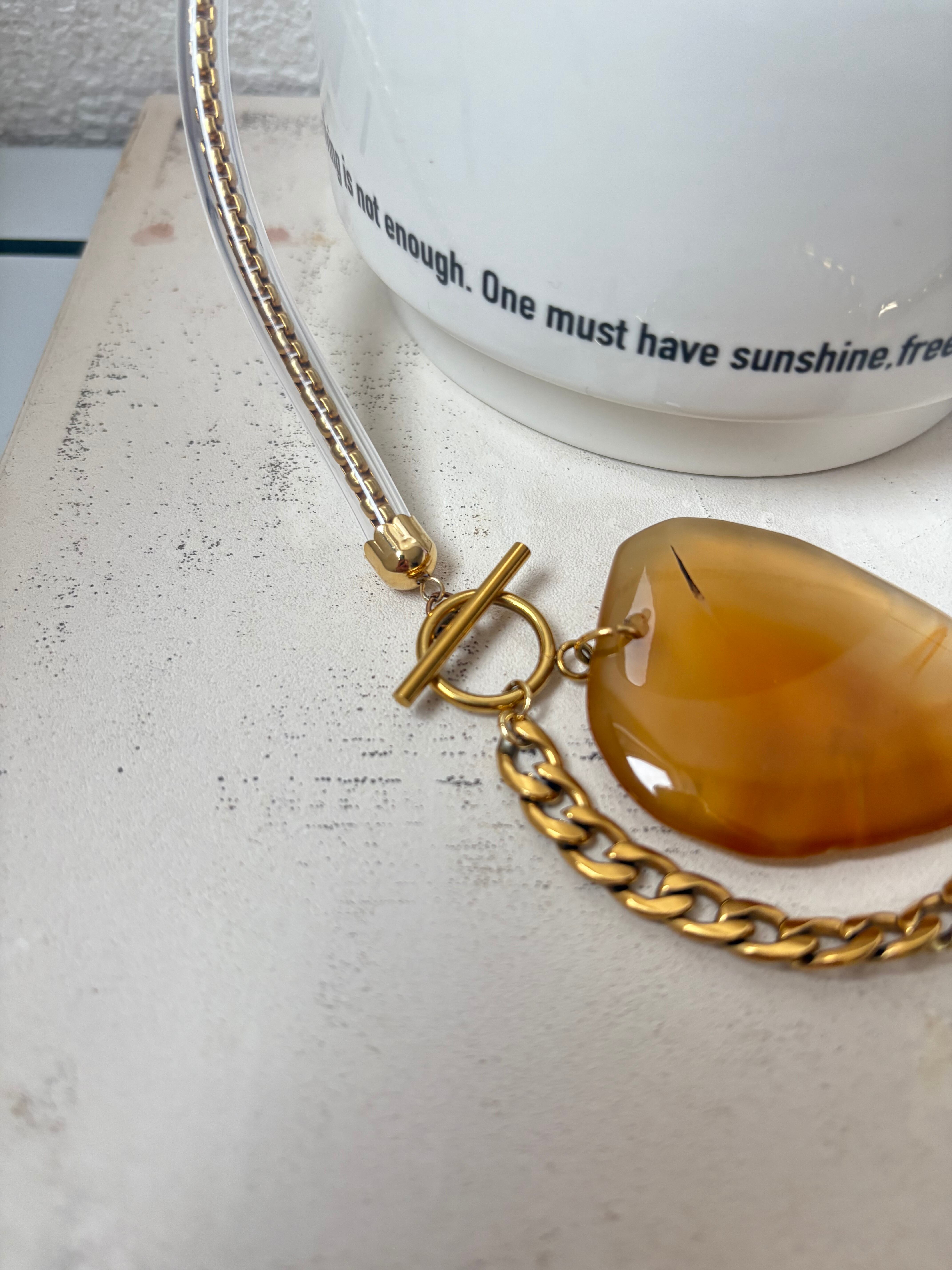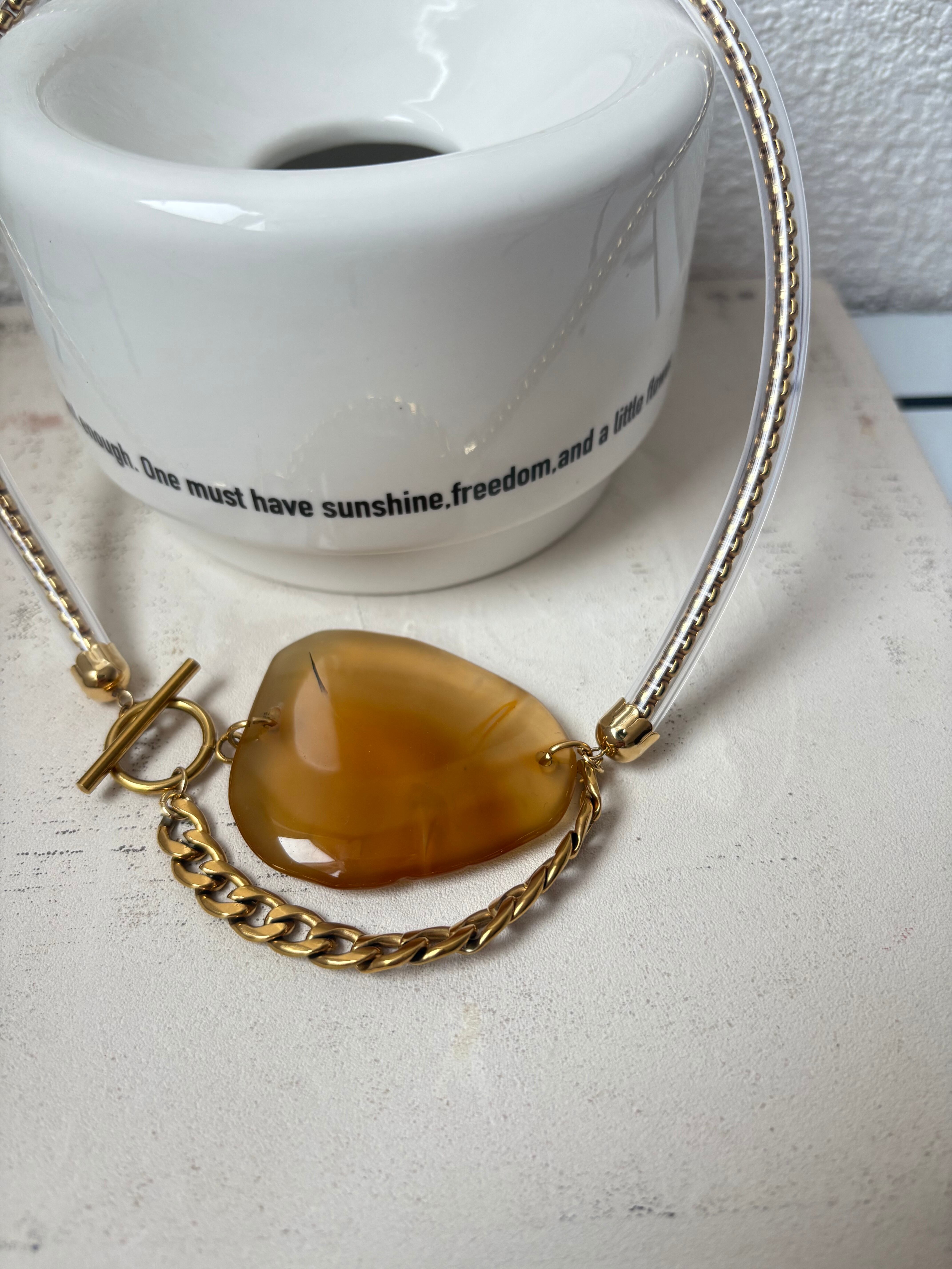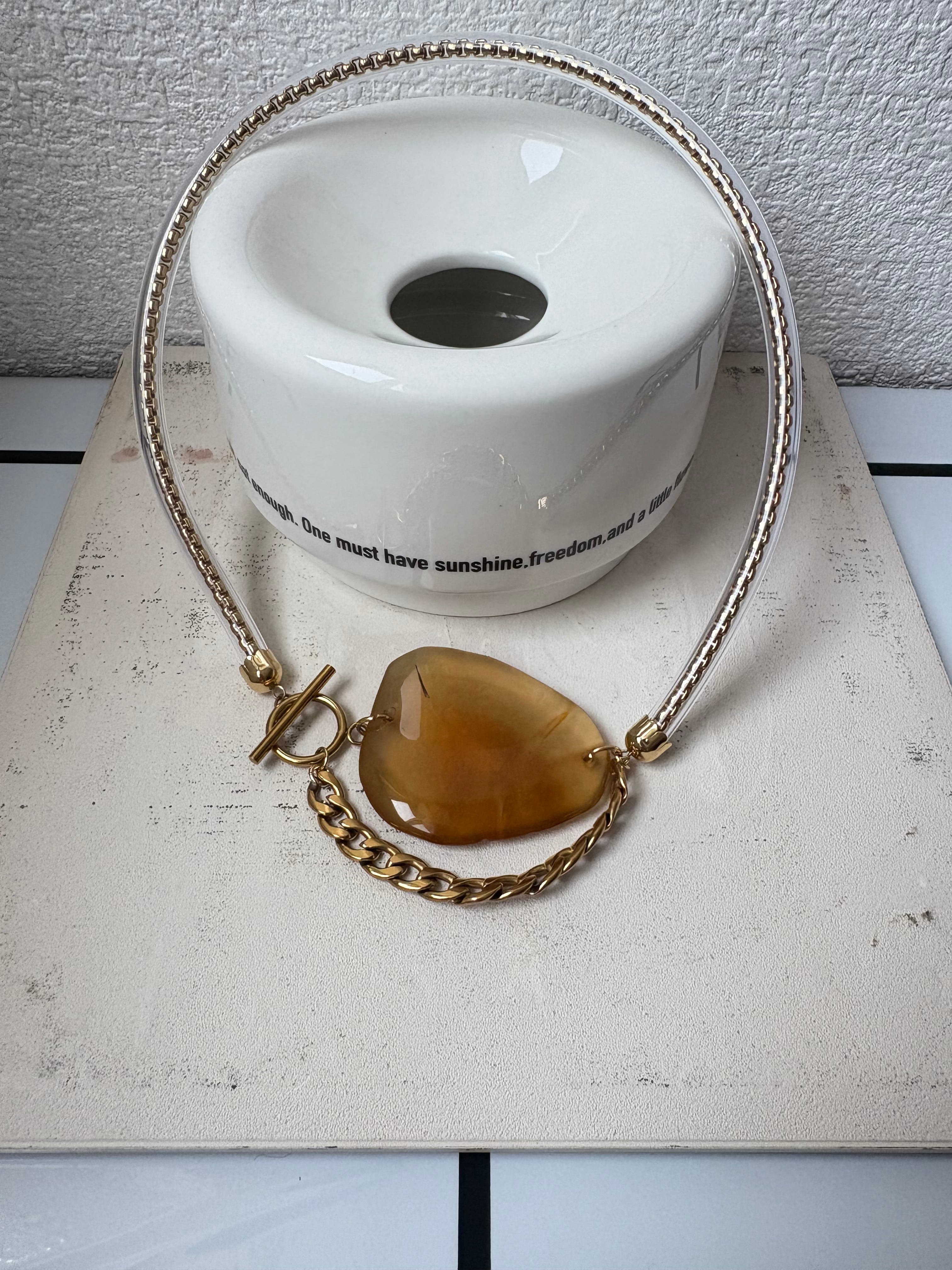 素材:チューブ・メッキチェーン・真鍮・アゲート