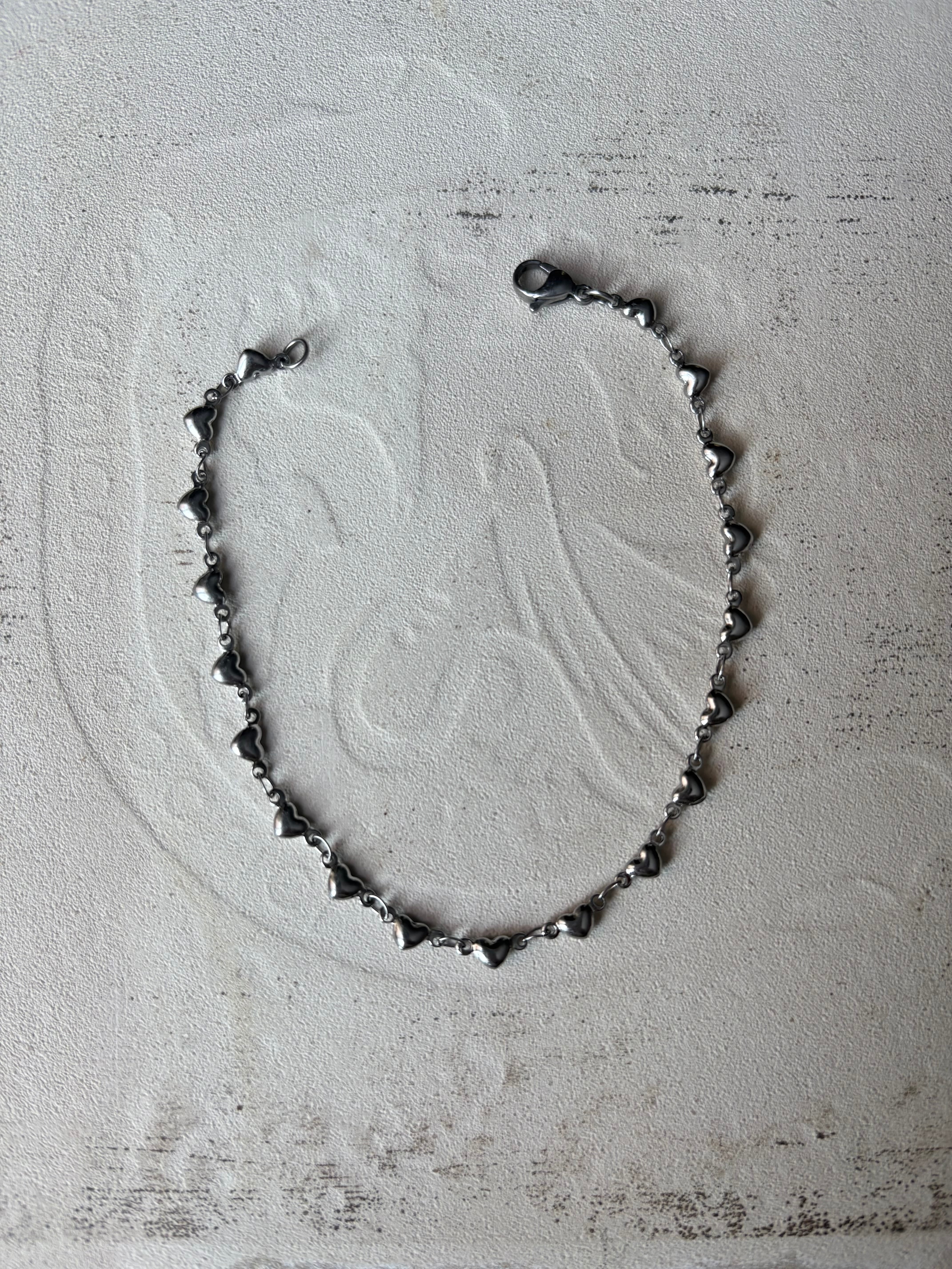 ♡の連なる華奢なブレスレットは